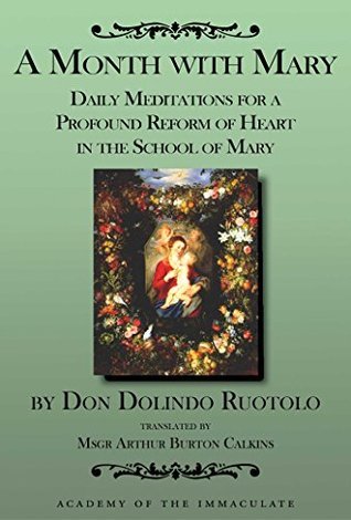 "A Month with Mary" by Don Dolindo Ruotolo is a devotional book. It was written by a priest for his spiritual directee in 1912. So it is over a century old. It reminded me very much of the "Imitation of Christ." "A Month with Mary" has Mary giving instructions about Jesus, every day. It's a meditation a day. It's about a couple of pages long. After each instruction is a prayer and then some kind of suggestion to do good work. Every day you read this.